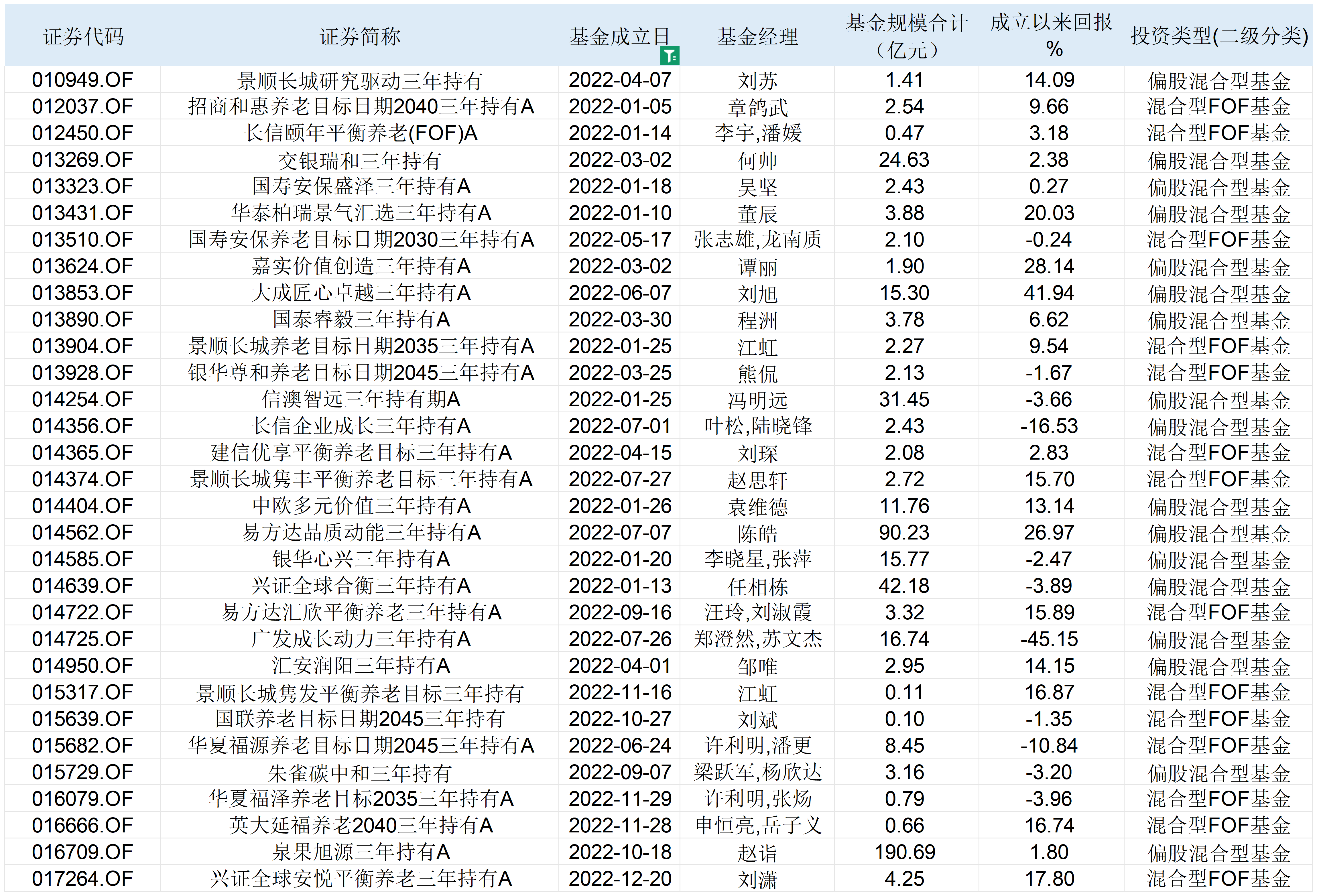表:2022年成立的三年持有期基金多数业绩不佳 来源:Wind 界面新闻整理