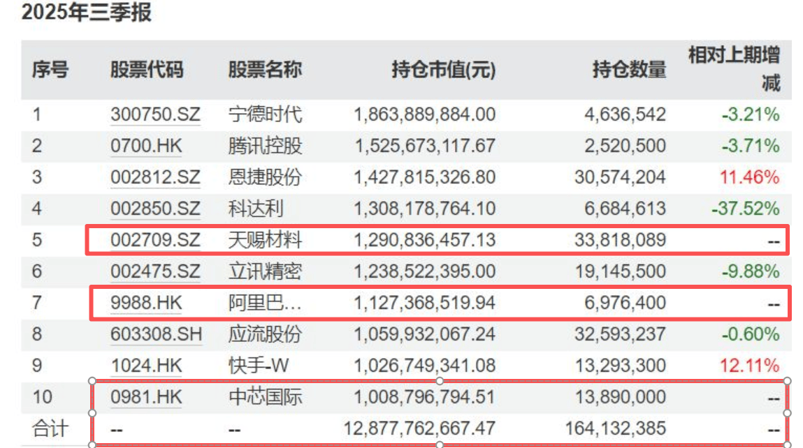 渡过漫长的三年,今年三季度该基金净值出现大回血,涨幅为45.58%,从调仓来看,振芯科技(300101.SZ)、新泉股份(603179.SH)、美团-W(退出前十大,天赐材料(002709.SZ)、阿里巴巴-W(9988.HK)、中芯国际(0981.HK)新进前十大。