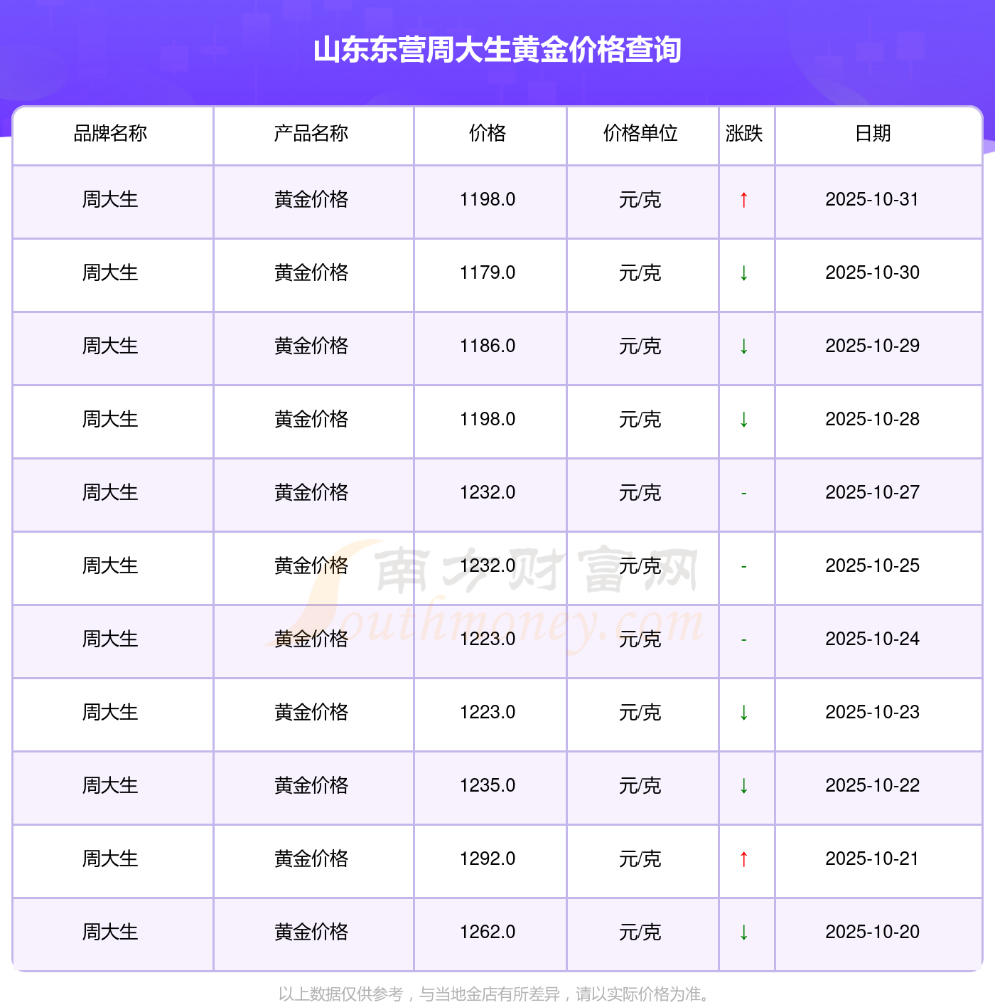 以上数据仅供参考,与当地品牌商、金店、企业及银行营业厅报价有所差异,依产品不同需另附工费,请以实际报价为准。本站对价格等不作任何保证或承诺,请自行核实相关内容,因此所引起的后果与本站无关。