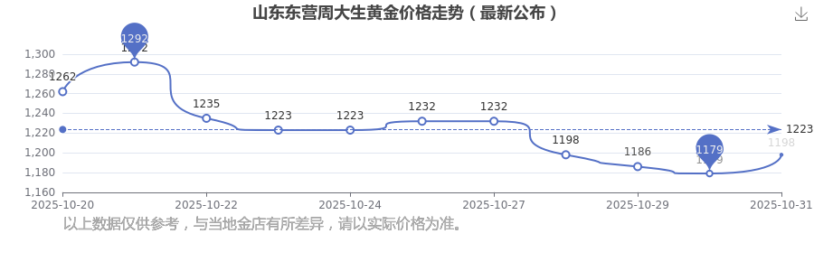 2025年11月1日,今日山东东营周大生黄金价格:1198.0元/克。