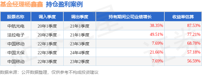 杨鑫鑫管理的工银创新动力股票基金在20年1季度买入中航光电,在持有1年又0个季度后在21年1季度卖出。持有期间的估算收益率为87.53%,持有期间中航光电在2020年到2021年的年报归属净利润增幅达38.35%。