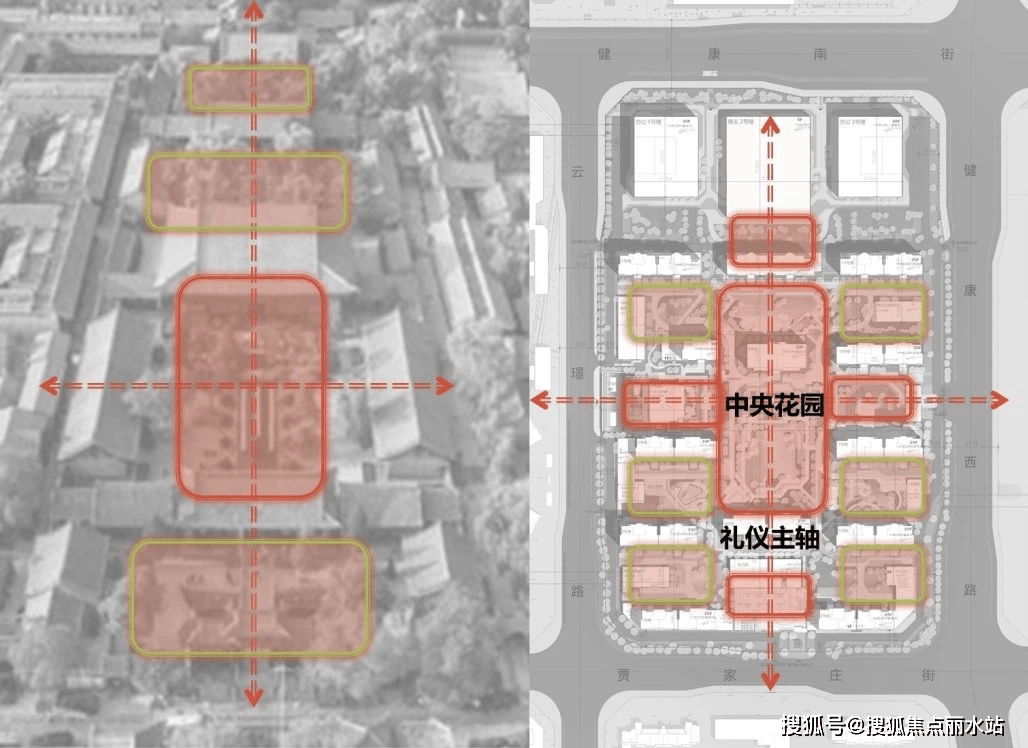 海尚府沿中轴对称进行整体规划,缔造双向十字轴空间架构,于黄金交汇处,打造超级中央大花园,形成一心、两轴、多组团的布置形态。同时庭前屋后的多重空间序列、多进制门庭等进一步强调礼序传承秩序,彰显世家名门风范。