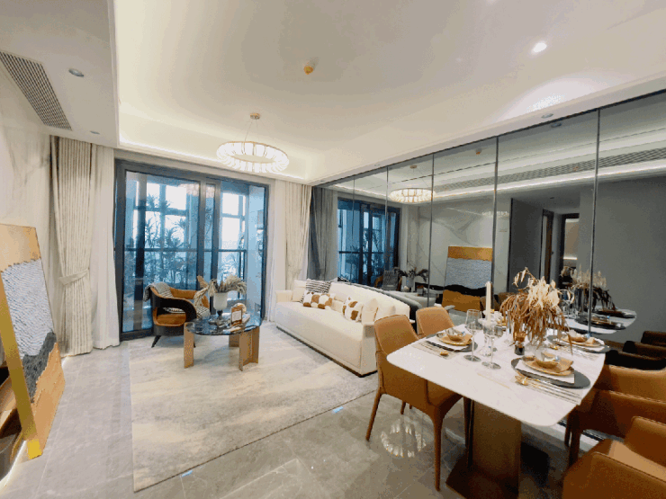 除了「三玻两腔」建筑立面、「一环两轴四带」园林景致、高定私人CLUB、榜YOUNG学堂、度假风戏水池等一众豪宅配置外,还有随着首批房源的登场而正式揭面的高奢精装标准。