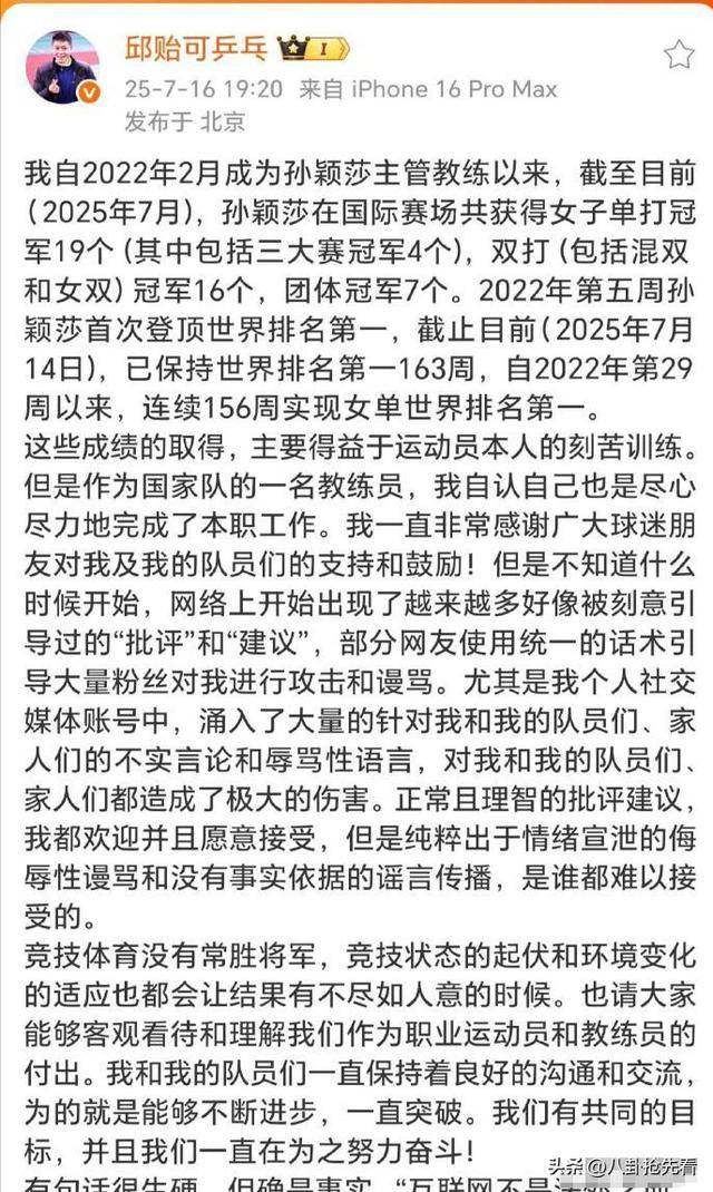 其实国乒也不是只有他一个刺头,就连如今好好说话的邱贻可,当年那也是有名的刺头。