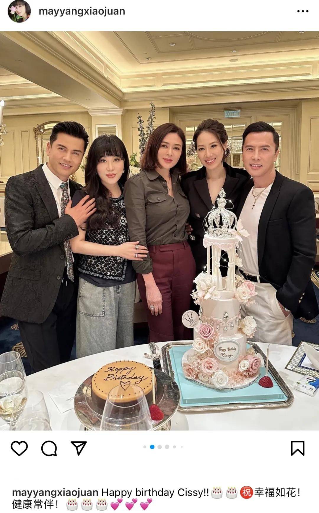 ▲ 社交媒体可见两家人确实来往频密。生日、结婚纪念日、生意开业以及节假日等等,双方多有聚会。这是2019年,甄子丹太太汪诗诗生日天,两对夫妻合影。