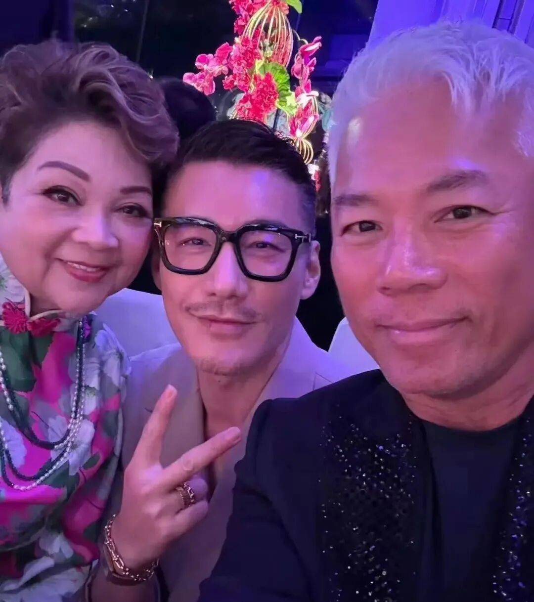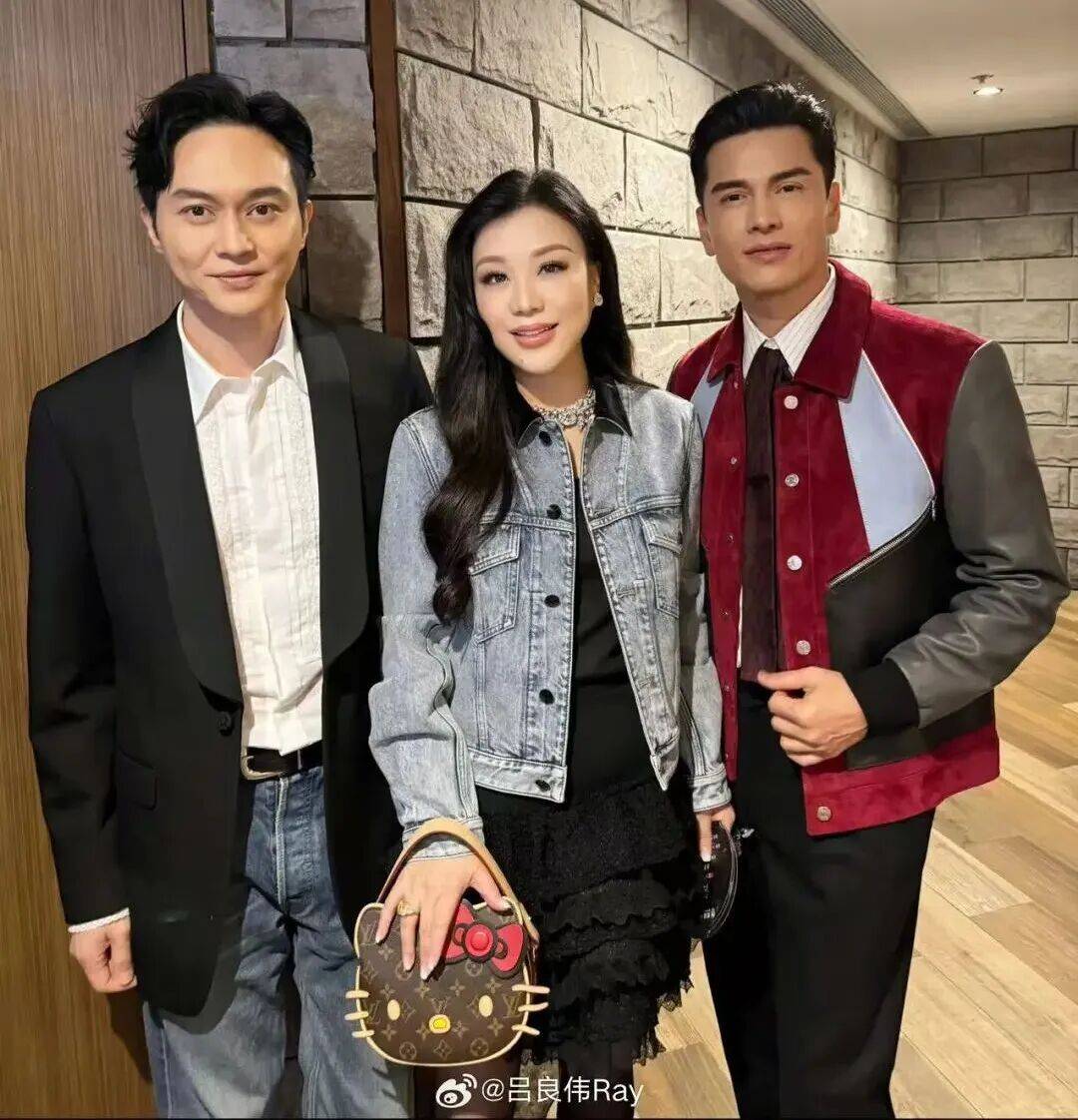 ▲这是去年年底他们夫妻俩跟张智霖的合影。众所周知,合影只P自己不符合社交礼仪,所以我们假设所有人都美颜了吧,但吕良伟居然比靓绝香江的张智霖还要帅气,这谁能信?
