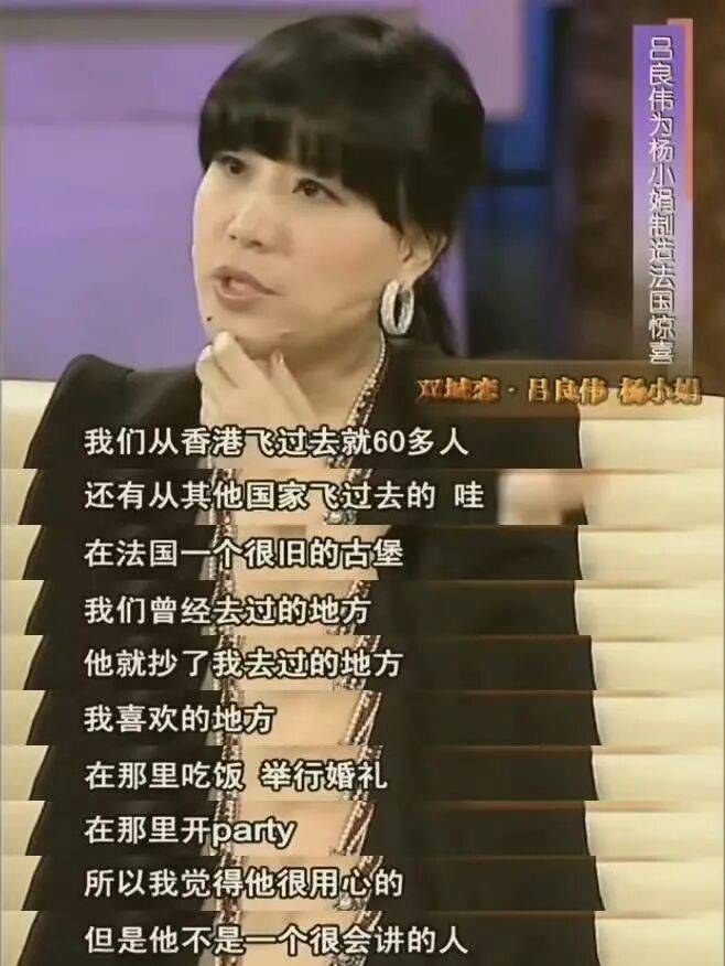 ▲吕良伟上《康熙来了》,在康永暗示询问下曾这么提了一句:她20几岁已经是深圳市商会的会长。而在他们全家上《鲁豫有约》那次,杨小娟笑容不多,态度镇定,滴水不漏。