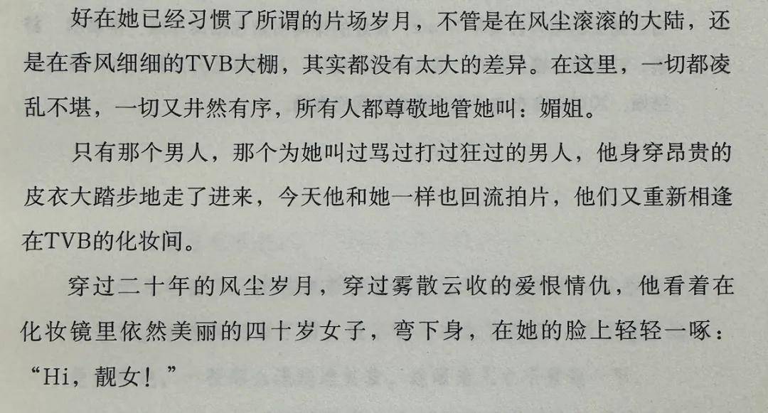 黄小姐曾在她的散文集《最好的女子》里《Hi,靓女》一文里写过他们的故事,“穿过二十年的风尘岁月,穿过雾散云收的爱恨情仇,看着在化妆镜里依然美丽的四十岁女子,弯下身,在她的脸上轻轻一啄:Hi,靓女! ”