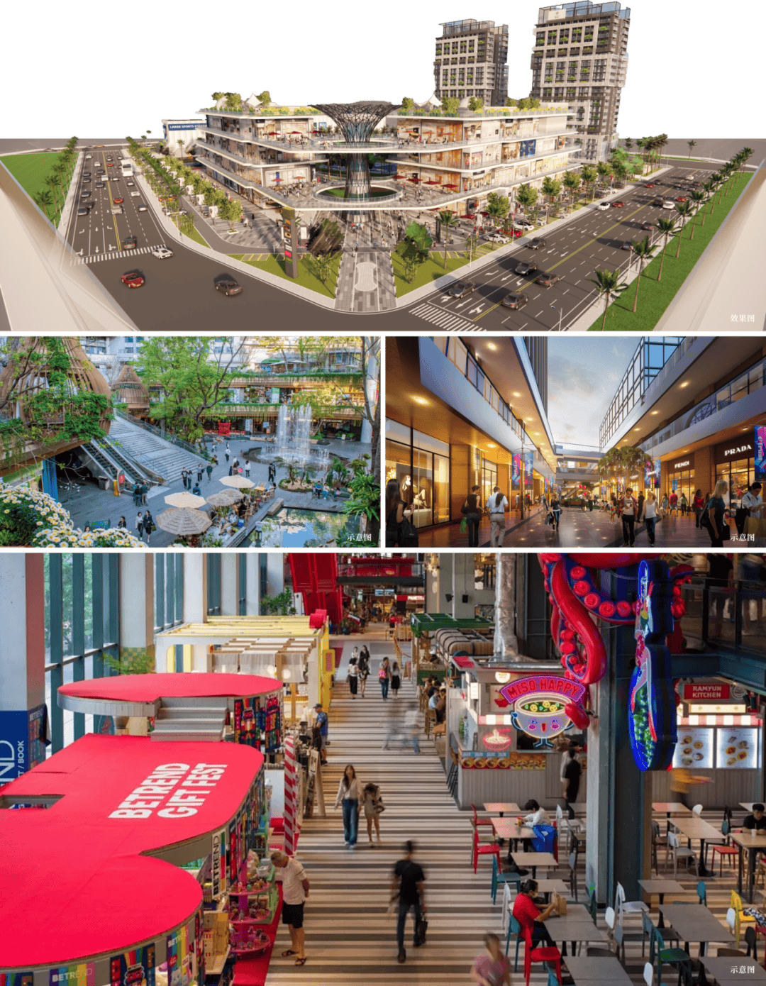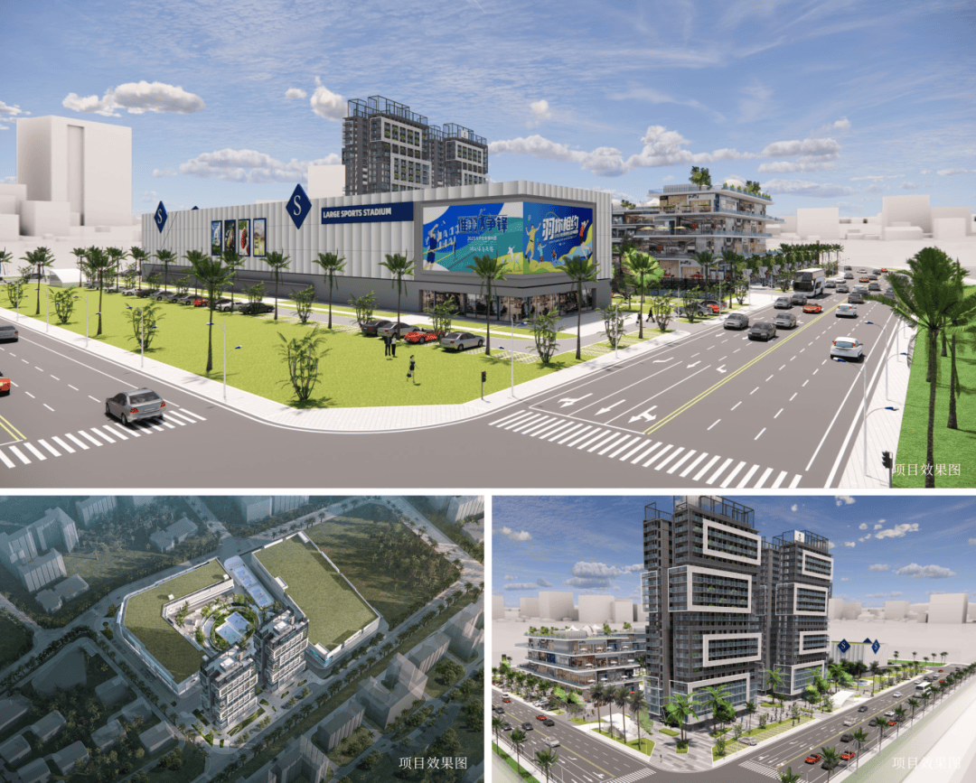 项目由2栋轻奢公寓、近8万㎡的热带风情商业综合体以及一座运动方盒共同组成。2栋轻奢公寓,以其精致的设计和高品质的装修,为居住者提供了舒适、便捷的居住环境;热带风情商业综合体,则宛如一个繁华的商业王国,汇聚了各种时尚的品牌和丰富的商业业态,满足了人们的购物、餐饮、娱乐等各种需求;运动方盒的存在,更是为热爱运动的人们提供了一个专业、便捷的运动场所。