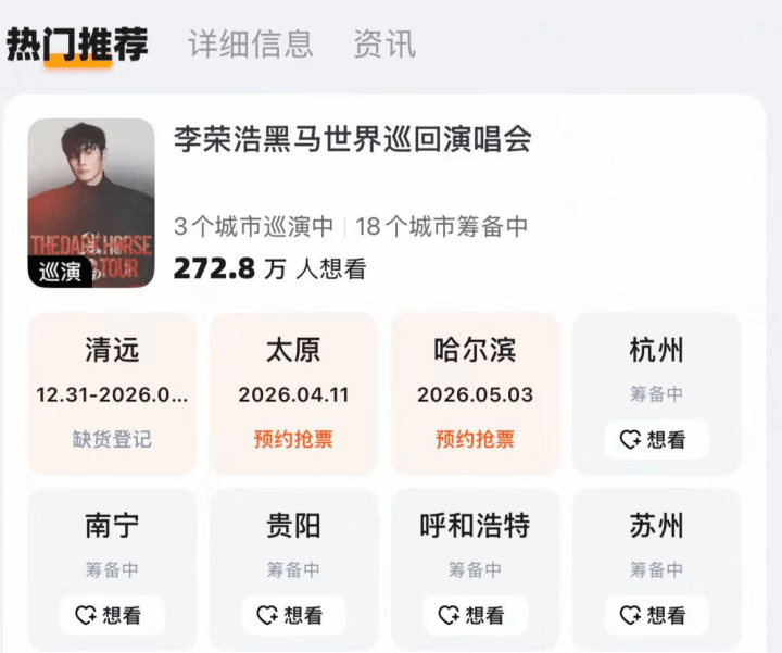 众所周知,2026年的生肖年是马年,但李荣浩的“黑马”巡回演唱会,真不是蹭的,因为他有张专辑真的就叫《黑马》。