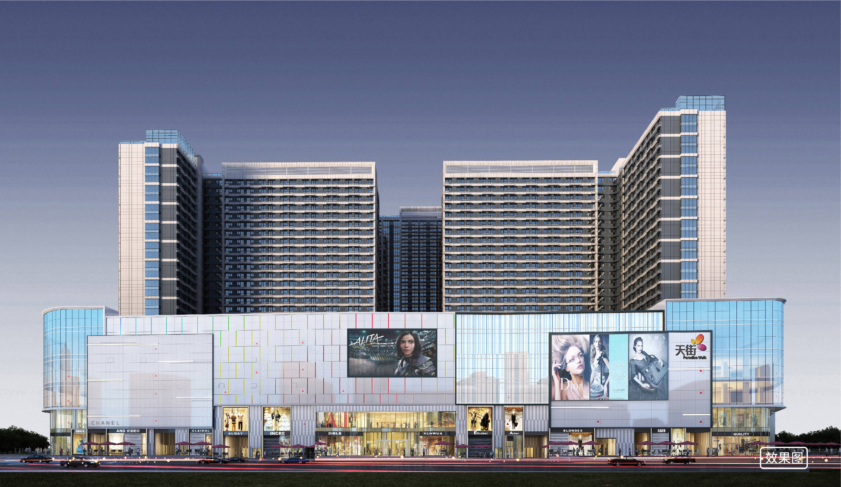 「美盛·中环壹号」采用现代简约建筑风格,以深色、银灰色、米白色铝板的搭配,加上强烈竖向感和韵律感的造型,勾勒对世界的表达。